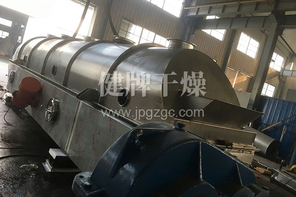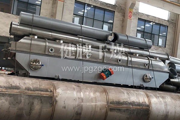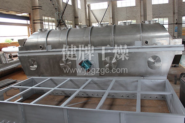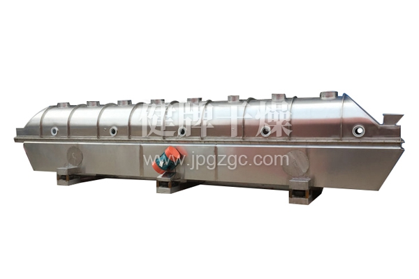 物料自進(jìn)料口進(jìn)入機內,在振動(dòng)力作用下,物料沿水平流化床拋擲,向前連續運動(dòng),熱風(fēng)向上穿過(guò)流化床同濕物料換熱后,濕空氣經(jīng)旋風(fēng)分離器除塵后由排風(fēng)口排出,干燥物料由排料口排出。